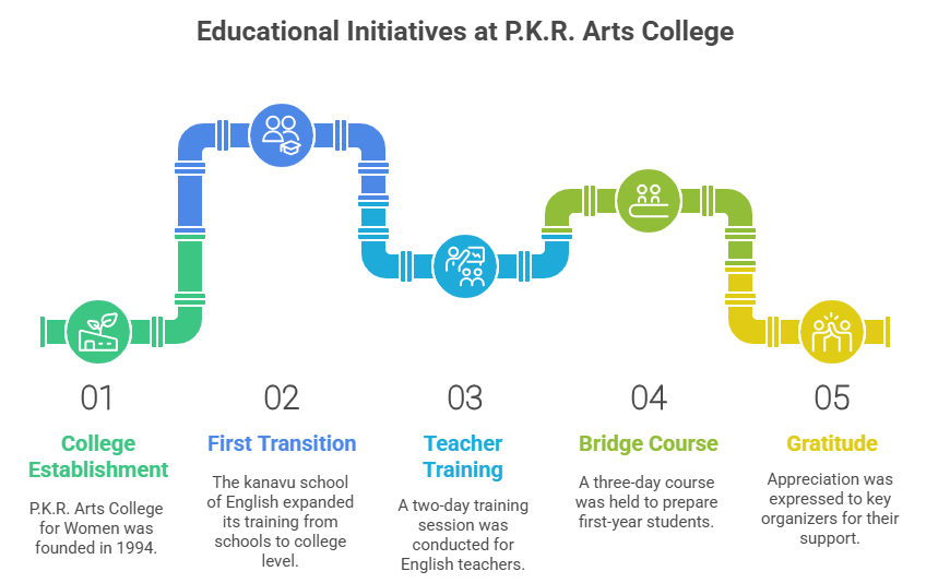 P.K.R. Arts College for Women, affiliated with Bharathiar University, has been empowering rural women since 1994 under the Dhandapani Rural Charitable Trust. Surrounded by hillocks and green fields, the college continues the vision of Late Thiru. Kalimudhaliar, carried forward by his grandson Late Thiru P.R. Natarajan, and named after his father Late Thiru P.K. Ramasamy.