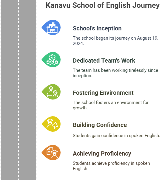 Our journey at the school began on August 19, 2024. Since then, the dedicated team at Kanavu School of English has been working tirelessly to foster an environment where students can build confidence and proficiency in spoken English. The classes run from 12:50 to 1:20 PM.