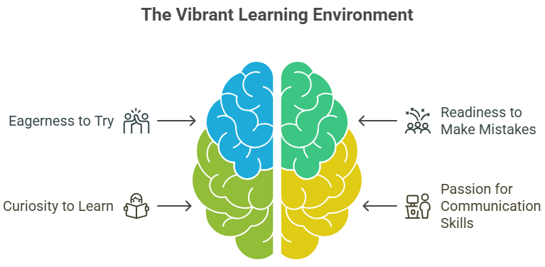 The students here are truly enthusiastic. They are eager to try, ready to make mistakes, and always curious to learn new words and expressions. Their passion for improving their communication skills is what makes this location so vibrant.